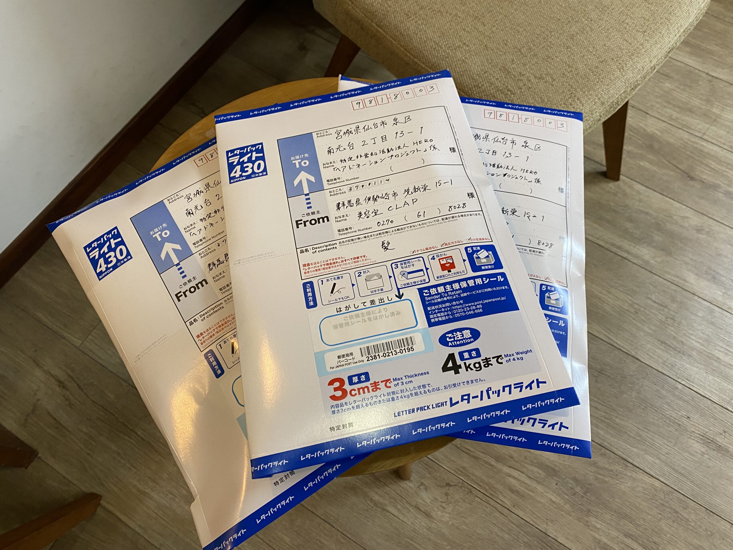 おかげ様で数か月分のご寄付頂いた髪の毛を無事に送付致しました。